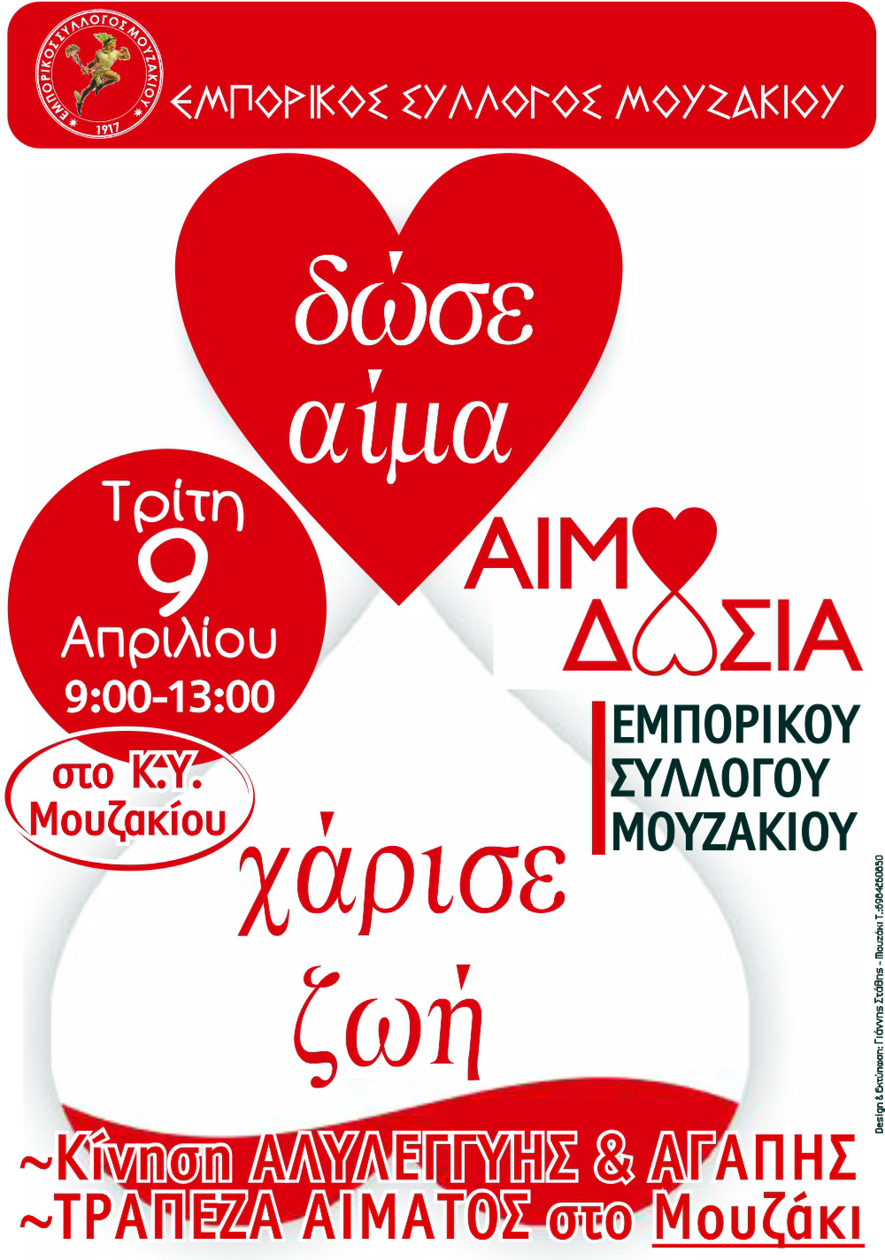 Τρίτη 9 Απριλίου 2013. Αιμοδοσία Εμπορικού Συλλόγου Μουζακίου